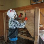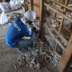 主な作業は浸水した1階部の部屋の壁をバール等の鈍器を用いて解体していくことでした。