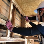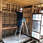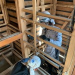 午前中は床下の断熱材を支える板を剥ぐ作業をしました。
