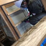 本日の住民さんのお宅では、費用面や他に生活する場所が無い関係もあり、お部屋の壁や床は剥いでいますが、リビングキッチンや縁側の床は元のまま残してあります。