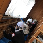 そのため、床下に潜って泥出しやブラッシング、消毒を行っています。今日は主にブラッシングの作業で、ボランティアに来てくれた5人のおかげで、ようやく終わりが見えてきました。そのせいか、当初原さんにお会いした時よりも柔らかい表情になっているような気がして、とても嬉しかったです。