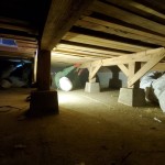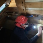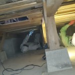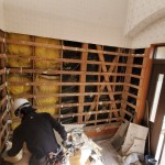本日の作業は、床下から床板のブラッシングと玄関の残った石膏ボードを取りました。