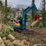 お庭には新しく砂利が敷かれ、大きな木も伐採され、2階には床が出来上がり、土間もお風呂も完成間近です。