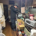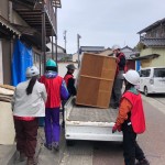 昨日から現地入りしており、本日は、被災家屋に入り本や小物家電の回収作業を行いました。