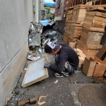 家の中には多くの家財が使えない状態で取り残されており、家屋が傾いているケースもありました。