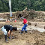 家の前が氾濫し、納屋の中に大量の泥水が入ってしまったお宅のお手伝いをしました。