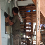 バスユニットを解体中、