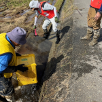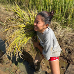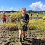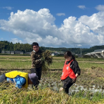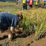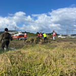 様々な支援団体の方々と共に協力し合い、被災農家支援として稲刈りを行いました。