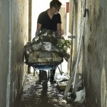 泥の掻き出し、浸水した物の搬出、災害ゴミ収集所への運搬を行いました。