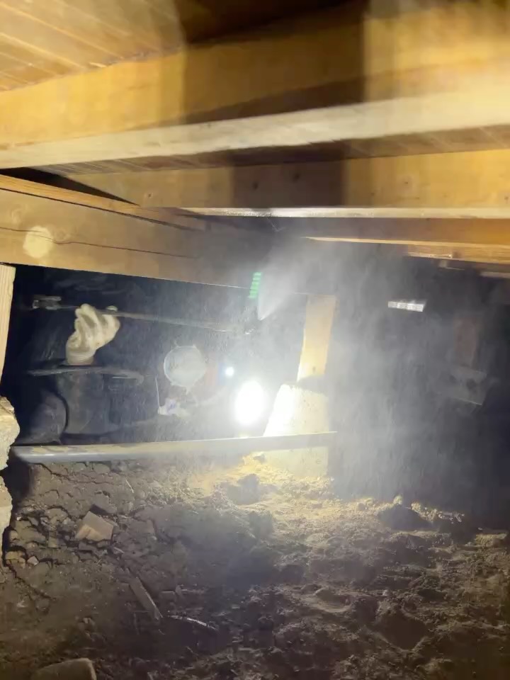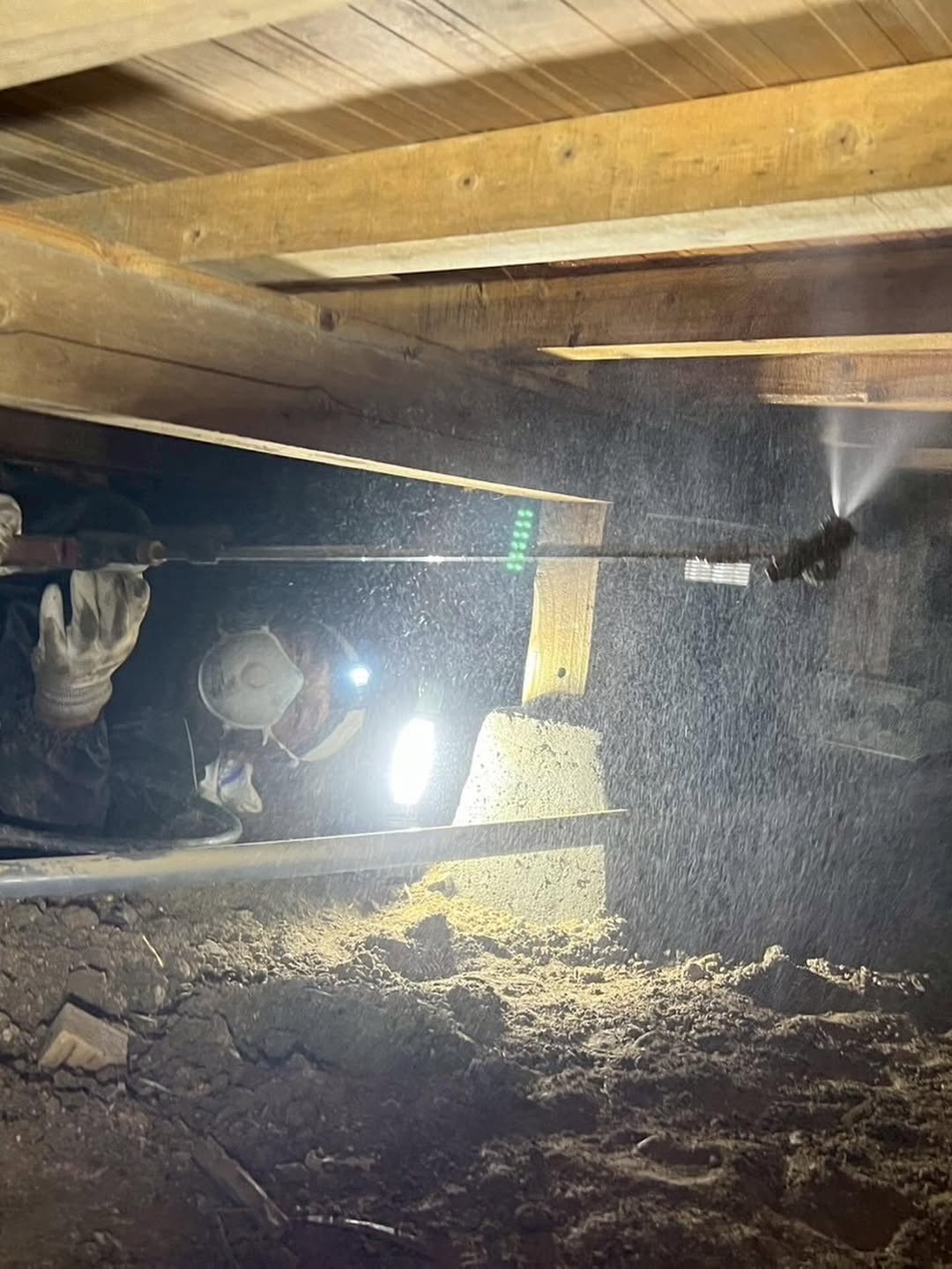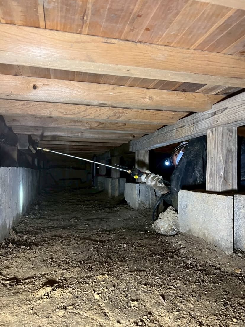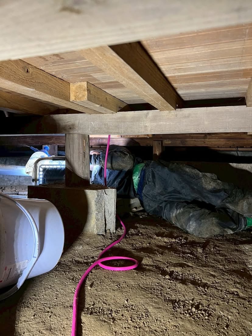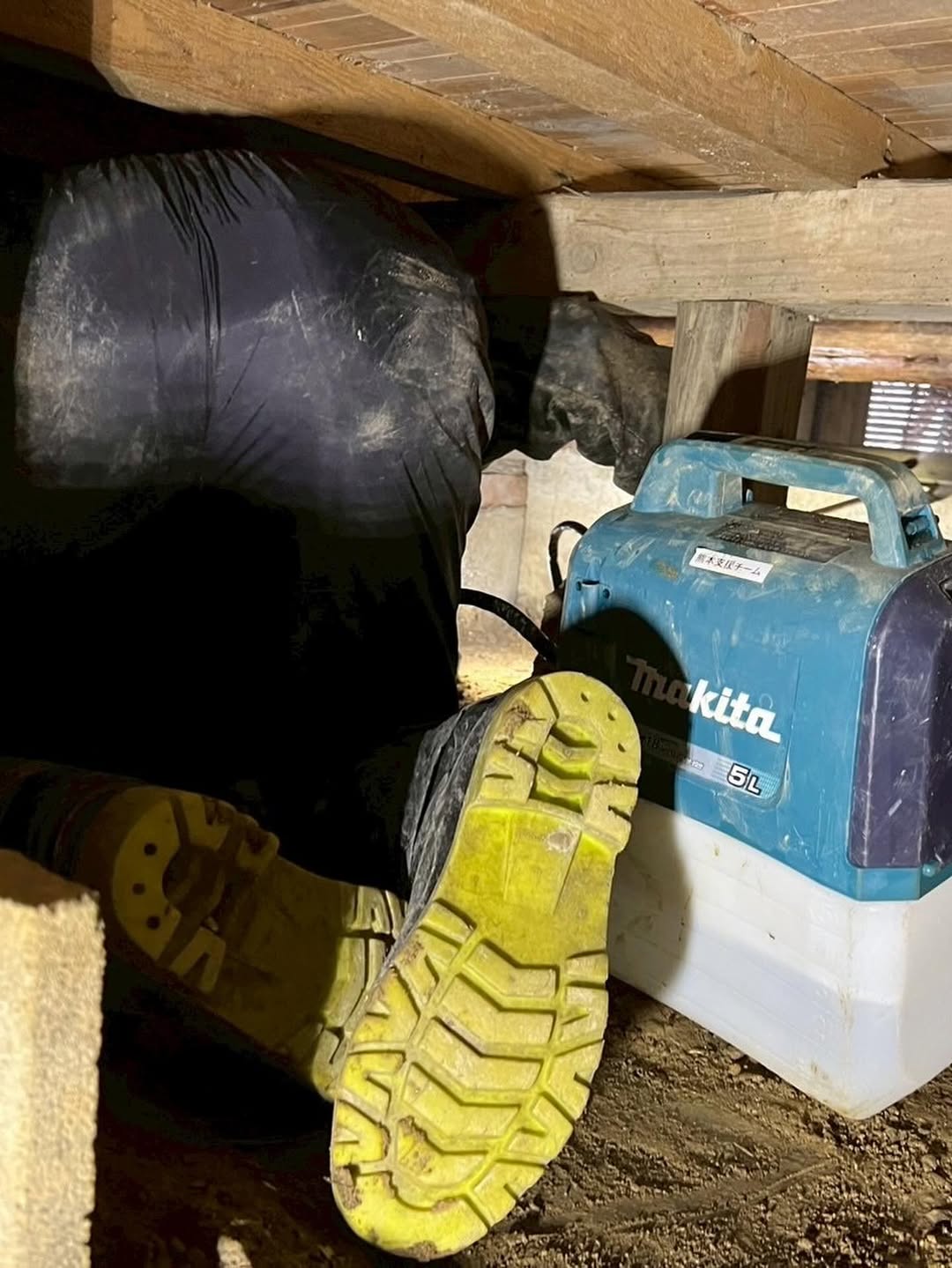 床下浸水のお宅では床下ブラッシング、消毒の作業を行いました。