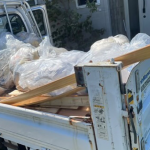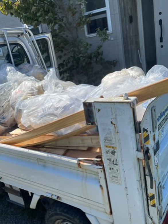 現在3件の内装解体をしており、撤去された災害ごみを庭先に溜まってきていたため、3件を周り回収し仮置き場へ2回往復。