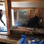 現場はホテルサン人吉の目の前にあるお宅でした。一階の大半が水に浸かってしまったということで、張り替える壁を剥がす作業をしました。