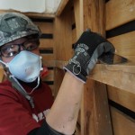 また、床剥ぎを行っていない箇所での泥だしもありました。床剥ぎを行っていない箇所では、床下にもぐり泥を出す必要があり酸素が薄く息苦しくなることが多くあり危険です。時間を計りながらチームメンバーの体調や疲労度を確認しつつ声かけをすることを目標に作業しました。