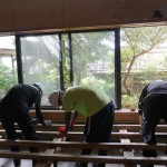 擦れば乾いた泥の粉がずっと出てくるような感じで終わりのない作業に思えましたが、協力して作業することで、床を消毒するという目標を達成することができました。