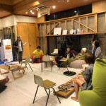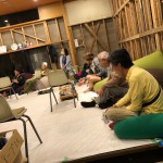お腹も満たした頃になると、ホールの中へ移動し、ゆったり寛げるソファ「ヨギボー」に座ってお話し会を行いました。