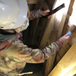 これまで、泥出し、壁剥ぎ、洗浄と作業を進めてきて、ようやく仕上げの段階に入ってきました。