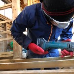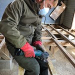 本日は、前日に引き続き、洗浄の準備と、根太の接着剤削りを行いました。