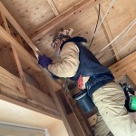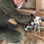 本日は、天井上の泥落としと、大まかに床をはいだ後の隅に残っている床板をマルチツールを使って綺麗に剥いでいく作業をしました。