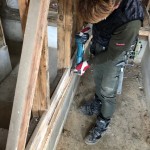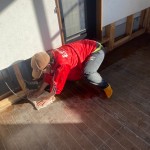 本日の作業は,壁のブラッシング、消毒,床剥ぎ、屋根裏のブラッシングを行いました。