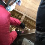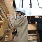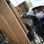 不慣れな3人の近くで、丁寧に説明したり、コミュニケーションをとって作業する学生達がとても頼もしく、私は天井に登って天井裏の泥出しを行いました。