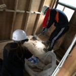 その甲斐があってかどうかはわかりませんが、リフォームすることに決められたとのことで、床板剥がし、断熱材撤去、断熱材をおさえる布の撤去を行い、泥出しができました。
