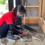 いつもの2、3人ではここまで進まなかった思いますが、壁のブラッシング、ゴミを石膏ボード、砂、断熱材、可燃物と分ける作業を行い、あと一日周辺の片付けを終われば洗浄作業、消毒と進みます。