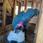 高圧洗浄機で流す人、ひたすらに泥や水を掃除機で吸う人、雑巾を使って階段など濡らしてはいけない場所を拭く人とそれぞれに分かれて作業を行いました。
