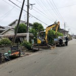 1日で終わるかどうかと思っていましたが、重機2台、ダンプ4台、40名弱の方々の力で全てを終わる事ができました。