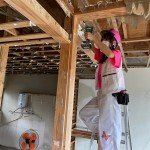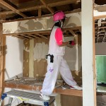 発災から9ヶ月経ってからの壁剥ぎで、想像以上に石膏ボードも脆く、簡単に剥ぐことができました。