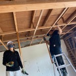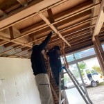 残り部屋半分の根太と大引きのブラッシングを行いました。