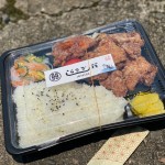 お昼は仮設商店街のモゾカタウンに先日オープンした、しらさき荘annexのお弁当をいただきました。