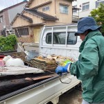 今回担当させていただいた作業は、古い納屋に収納されていたものを仕分けしながら廃棄する作業で、収納されていたものの中でも非常に多かったのは、繊維製品(洋服、着物、タオル)で、正確にカウントしていたわけではないが、90リットル用のビニール袋で50袋以上は廃棄したと思われます。