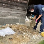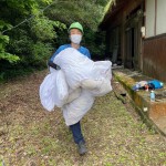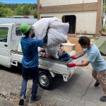 8時起床。9時にミーティング。私はマニュアル運転ができたので借りた軽トラで現場と廃棄場所を往復する活動をした。