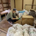 家財整理、家財出しでは、住民さんとお話をしながら、大切なものを救出したり、被災したタンスや布団、畳を運び出して災害廃棄物置き場に運んだりしました。住民さんは高齢な方が多く、助けを必要としているが大勢いらっしゃいました。