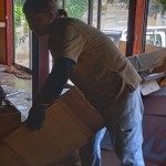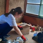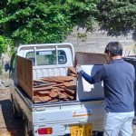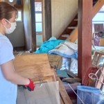 家財整理をメインに活動。また個人で動いているボランティアさんのお手伝いとして傾いた家の修繕も行いました。