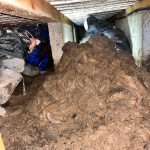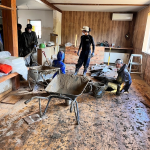 他団体の方とも、協力しあいひろい床下から泥をかき出し、一輪車で運部作業を行いました