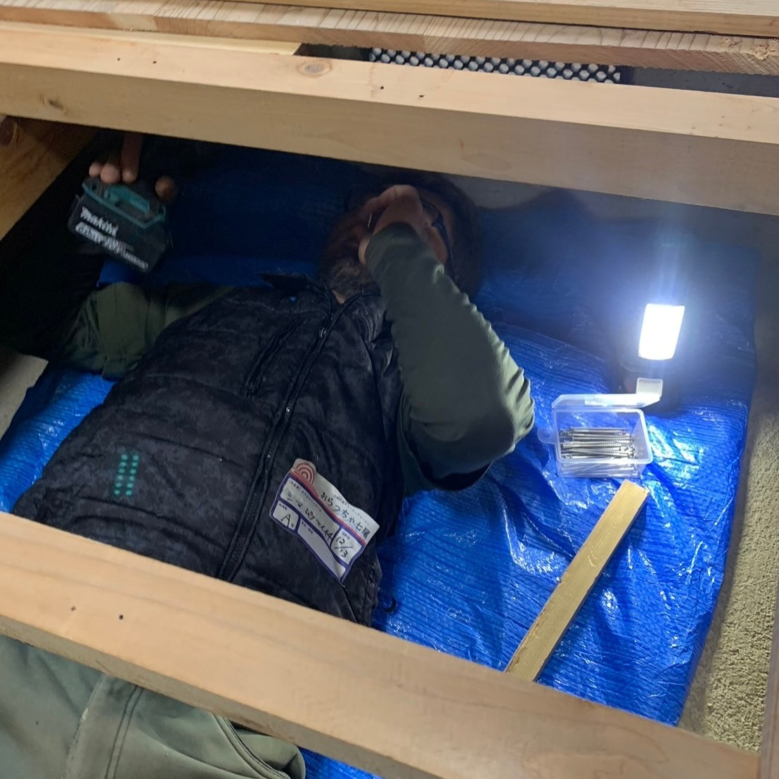 水害後すぐに常駐スタッフゆい、あいなを中心に床下泥だし、消毒までさせて頂いたお宅。