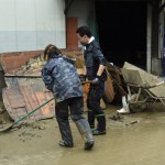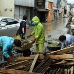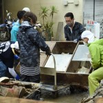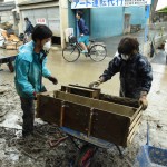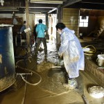 午後は、酒造の中の家財道具と泥出しを行いました。最後は床を水で流して、清掃しました 。