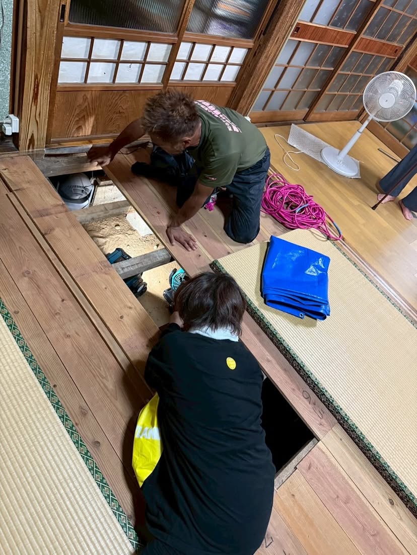 私たちが来るまでの4日間でおばあちゃん1人で泥出しを少しづつ進めておられたが、6人が作業することで1日で完了しておばあちゃんも喜んでおられ、安心された模様。