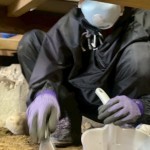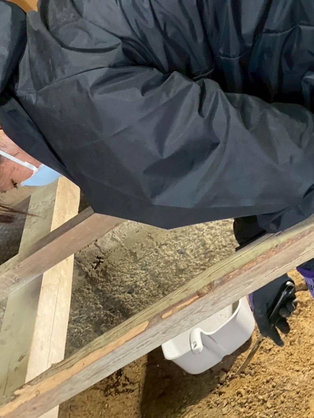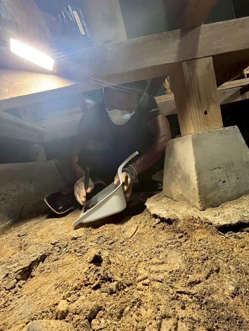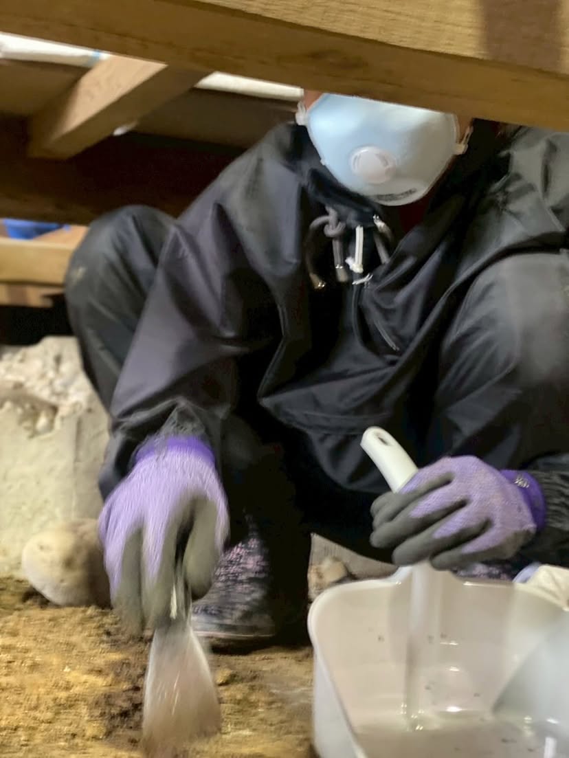 今日は、浸水被害を受けたお宅で床下の土に生えたカビを取り除く作業をしました。スコップで表面の土を削っていくと、思っていたよりもずっと深いところまでカビが広がっていて驚きました。土の中にまでカビが根を張るなんて、知りませんでした。