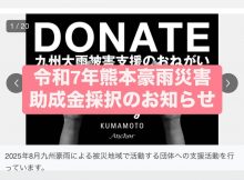 〖助成金採択のお知らせ〗 私たちの活動が、BRIDGE KUMAMOTO基金に採択されました。 こちらの支援金は、Yahoo!ネット募金を通じて寄せられたご寄付をもとに、九州の被災地で活動する、顔が見える団体へ […]