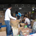 3月16日夜に、若者30名が集まり「東北の人たちを助けたい!」の思いで一つ になり、支援物資を集め、現地活動に行くメンバーを決め、更に出発を3月22日早朝と決定。呼びかけ入れて正味4日間で、支援物資20tが集まり、20日の仕分け作業には、200名近い協力者が集まりました。遠くは長崎、宮崎からも来てくれました。