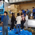 (2)支援物資の積み込み作業の様子(2011年3月21日) ※約60名のボランティア協力